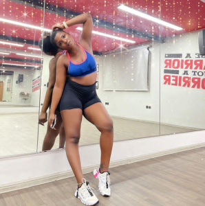 The actress blessed her Instagram page with a new dazzling photo of herself as she strikes a pretty pose in her gym clothes. In the photo, the actress was seen leaning on the glass door of the yet-to-be-named gym while wearing a short blue-coloured tank top, a pair of tights, and white sneakers.