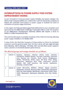 This has become necessary due to the ongoing works on the Pokuase Bulk Supply Point.
