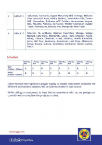Area in the North-Eastern parts of Accra to be affected for the next eight days are listed in the guide below.