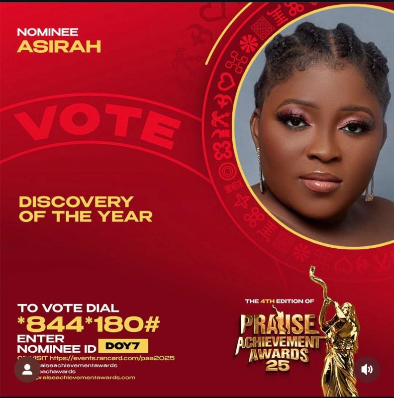 Gospel Artiste Asirah Nominated For “Discovery Of The Year” At 2025 Praise Achievement Awards