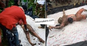 The naked decomposing body of the victim, Ama Afriyie was found a day after the incident when they both failed to return from the farm.