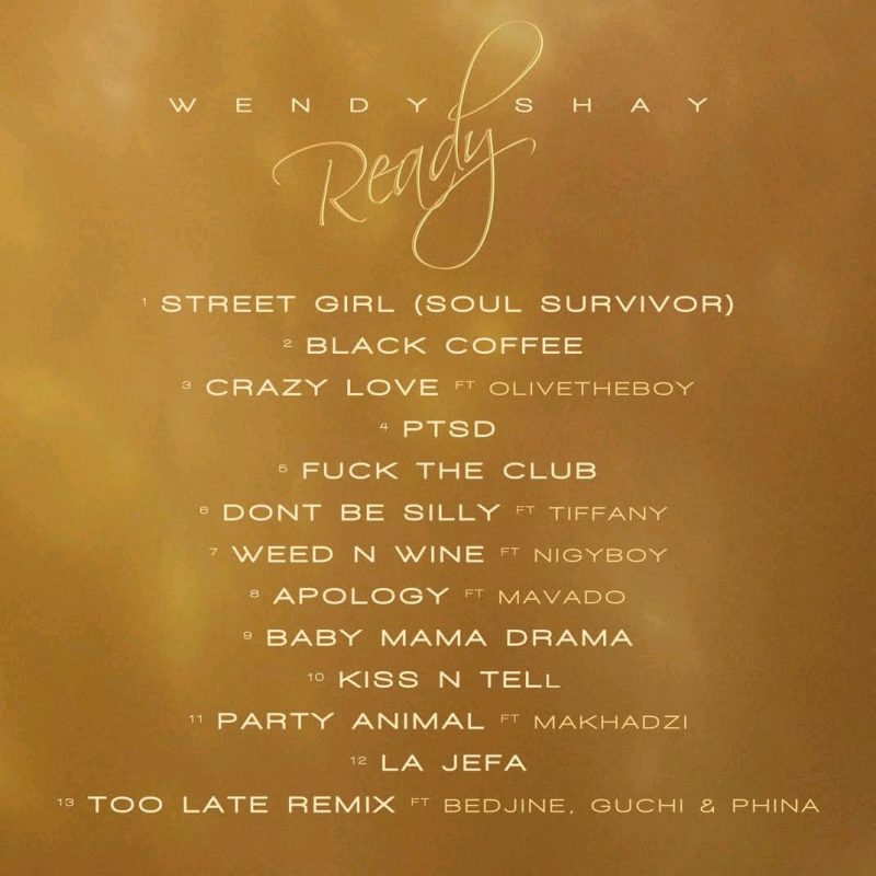 Wendy Shay’s “Ready,” a 13-track album that features Olivetheboy, Itz Tiffany, NigyBoy, Mavado, Makhadzi, Guchi, Phina, and Bedjine.